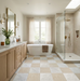 Crema Balkan, Bianco Ibiza Antiqued 12x12 Limestone & Marble Checkerboard Tile